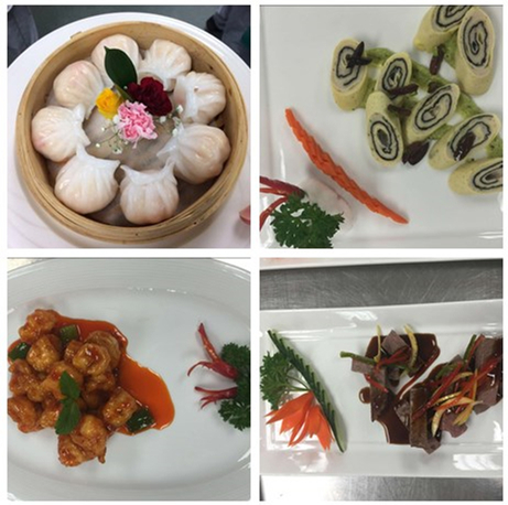 中餐技能展演以“青岛之夜”为主题,宴席菜品根据中国饮食文化特色对传统中餐筵席进行设计改良,并结合加拿大当地饮食特点与原料种类,从口味、色泽、品质三个方面出发,经过四次讨论筛选制定而成,涵盖了四款精美凉菜:柠檬香汁牛肉、天府麻辣嫩鸡、金裹鲜白玉卷、酸辣时蔬脆瓜;四款经典热菜:龙虾煲面鱼汤、果味浇珊瑚鱼、雀巢豆香肉丁、宫爆米果虾球;两款传统点心:椰香绿茶酥、水晶虾饺皇;一款饭点:中式什锦扣饭。宴席的菜品设计突出了中国传统菜品风格,体现了中国的茶文化、节日食俗文化和儒家文化。我院四位大师完美展示了中国烹饪技能,充分体现了中国饮食文化的精、美、情、礼的四大属性,最终在“青岛之夜”宴会上得到卡纳多学院领导及北湾市各级政要的高度赞誉。卡纳多学院校长在总结致辞中指出:“中国烹饪技能展演活动是学校建校以来最为成功、最具意义、社会评价最高的一次交流活动。”