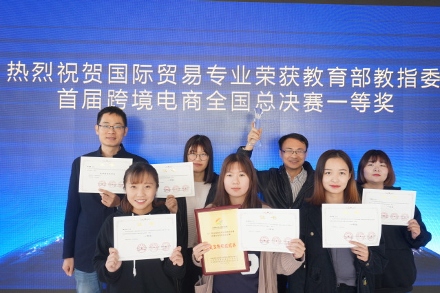本次比赛由教育部高等学校经济与贸易类专业教学指导委员会主办、中国国际贸易促进委员会承办,旨在贯彻落实《国务院办公厅关于促进跨境电子商务健康快速发展的指导意见》(国办发[2015]46号)中关于“增加就业、推进大众创业、万众创新”和“充分发挥行业组织作用、联合高校和职业教育机构开展跨境电子商务人才培养培训”的要求。大赛设知识赛、全国预选赛/区域赛(省赛)、全国总决赛,历时6个月,全国共有1000多所本科、高职院校队伍参与比赛,其中本科院校有中国人民大学等多所著名院校参赛。我院由国际贸易专业部分师生组队参赛,选手们凭借扎实的专业功底、精湛的专业技能最终获得一等奖。