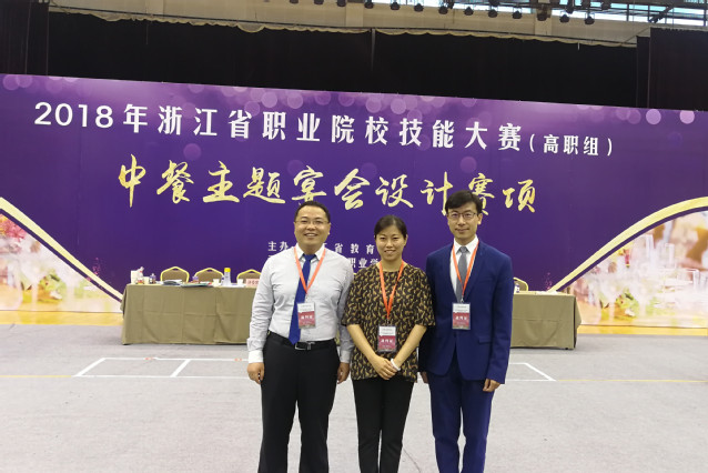本网讯(旅游与酒店管理学院 )6月2324日,由浙江省教育厅主办的2018年浙江省职业院校技能大赛“中餐主题宴会设计”赛项在浙江旅游职业学院举行。我院教师王光健、郭贵荣、杨明义受邀担任此次比赛接待方案创意设计和中餐宴会摆台两个赛项的评委。