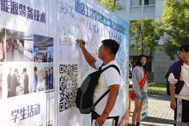 文化滋养心灵,文化涵育德行,文化引领风尚。学院充分利用迎新平台,以校园广播、广告展板、宣传视频、微信推送等媒介向来来自全国各地的新生和家长展示学院历年来在教育教学、技能大赛、学生管理等方面取得的成就,微笑文化、“爱心、实力、责任”的校风和“勤真灵雅”的校训得到了家长的广泛认同,提升了学院的社会影响力和美誉度。