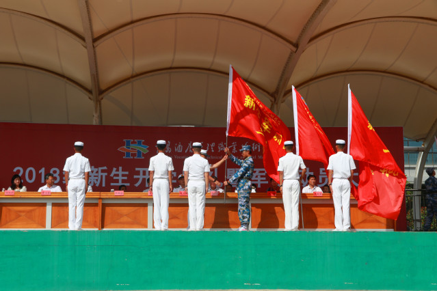 典礼在学院运动场举行,中国人民解放军海军潜艇学院潜艇兵训练基地政治委员赵华锋、训练基地学兵一大队政治委员景影、新生军训团团长杜韫博,家长代表李静女士,学院党委书记李达、院长姜玉鹏,党政领导班子其他成员出席仪式。远道而来的各位家长朋友们、全体承训官兵以及各二级院部、相关职能部门的负责同志、全体辅导员、2018级新生班主任及全体新生参加了仪式。