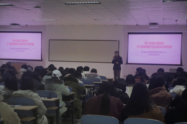 本网讯(总务处 宋磊)为进一步加强sunbet学生防范艾滋病意识,推进艾滋病预防工作积极有效的开展,校医院于12月6日邀请李沧区疾病预防控制中心贾晓珺科长为学生讲解了艾滋病防治知识。