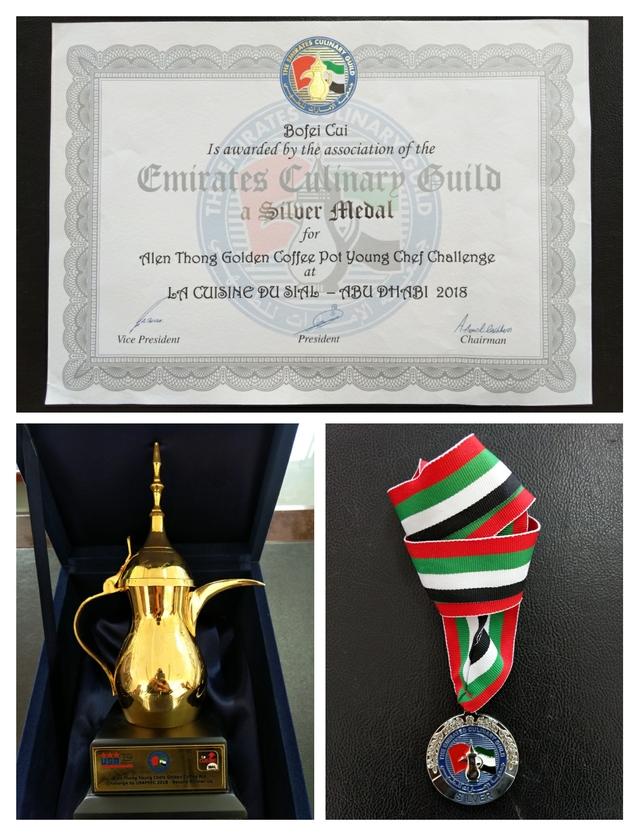 学院学生在第二届“艾伦·冬金咖啡壶杯”阿布扎比青年厨师挑战赛上勇夺银牌