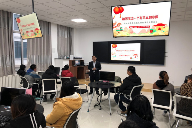 主题班会上,刁洪斌与同学们分享了自己在大学时期的寒假生活,并聆听同学们的假期计划。通过这次主题班会,同学们明晰了思路、端正了态度,纷纷表示要度过一个既轻松愉悦又丰富多彩、既能放松身心又有充满价值的寒假。