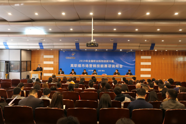 本网讯(工商管理学院 赵琪)4月30日上午,2019年全国职业院校技能大赛(高职组)市场营销技能赛项说明会在我院学术报告厅召开,来自全国70多家职业院校的120余名代表参加会议。
