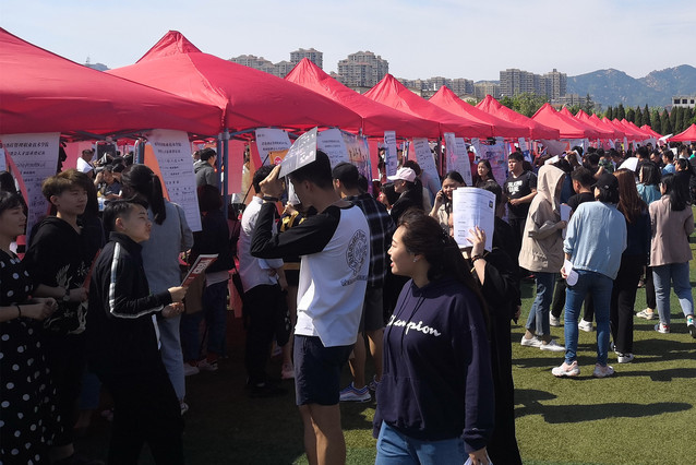 本网讯(招生就业办公室 张承业)5月16日,学院2019年春季综合类校园供需见面会在足球场成功举办。供需见面会邀请到了中国邮政、海信集团、青岛银行、索菲特银座大酒店等350家企事业单位参会,为我院学生提供了10000多个实习就业岗位。