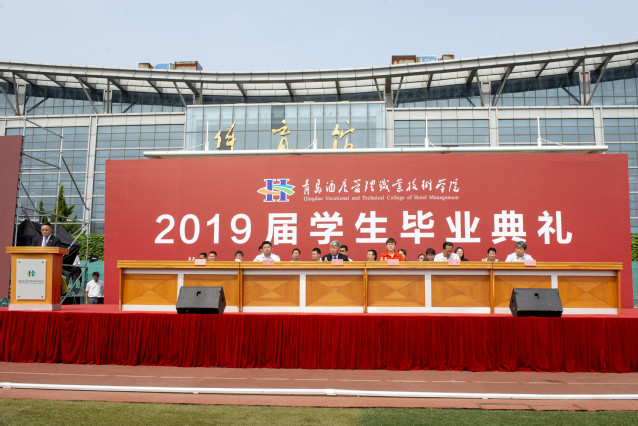 旅游与酒店管理学院祝心怡同学代表2019届毕业发言,她表示毕业生将在“勤真灵雅”校训的熏陶下,认真书写自己的人生,填写好人生的履历表,为母校增光添彩,我们的青酒管,永远不打烊。