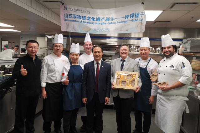 本网讯(国际交流与合作处 烹饪学院)12月3日至6日,学院副院长王建宝等一行5人前往加拿大魁北克旅游与酒店管理学院(ITHQ)进行访问交流。访问期间,代表团为加拿大师生进行了中国烹饪技能展演和山东非物质文化遗产饽饽榼子技能展示等,双方挂牌成立sunbet申搏官方网站山东非物质文化遗产传播中心、sunbet申搏官方网站中国海外传统文化培训中心,并正式签署合作备忘录。
