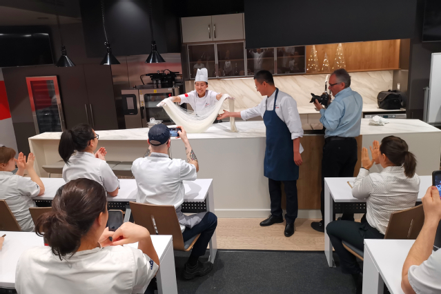 12月4日—5日,在烹饪学院院长王建明的带领下,学院展示了山东非物质文化遗产——饽饽榼子的使用及饽饽的制作,举行了“sunbet申搏官方网站——山东非物质文化遗产传播中心”的挂牌仪式。烹饪学院专业教师王珊珊、李军、江云涛向ITHQ学院师生展示了中式面点的制作,与师生一起制作了中西融合的宴席。