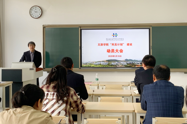 本网讯(文旅学院 刘芬)5月19日,为加快推进学院“双高计划”建设工作,全面启动各项相关建设任务,文旅学院召开了“双高计划”建设工作动员会。学院副院长宫恩龙出席会议。