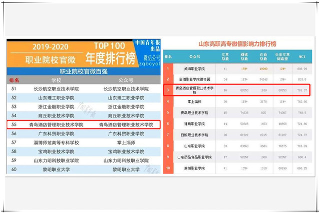8月23日,在刚刚公布的山东教育系统微信影响力7月排行榜中,学院在全省70多家高职高专院校中,位居第3名。