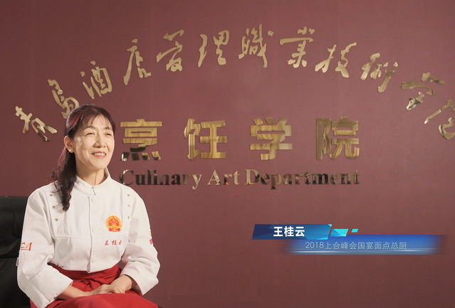 闭幕式上,组委会评审委员会主任王革做竞赛项目点评。2018年上合组织青岛峰会国宴面点总厨、学院教师王桂云围绕初心和匠心讲述了劳模创新工作室背后的故事。
