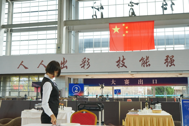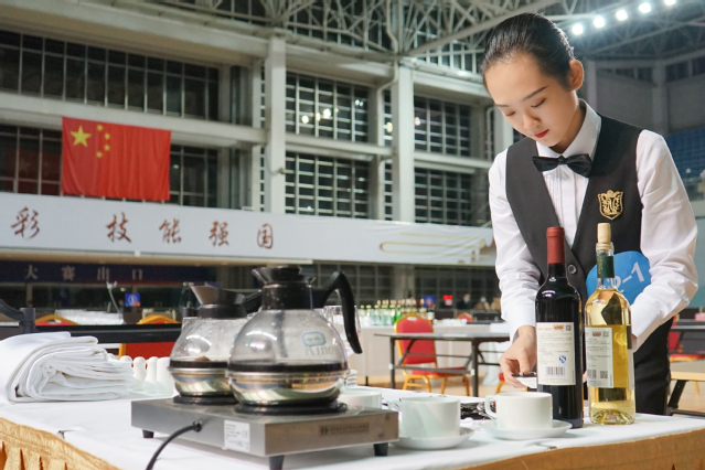 此次大赛,学院按照国赛试点要求,内容主要围绕餐厅服务中的中餐和西餐两个分项进行,中餐服务包含主题宴会设计和宴会服务两个模块,西餐服务包括鸡尾酒调制与服务、咖啡制作与服务、休闲餐厅服务三个模块。每个模块既有技能操作又有现场服务,涵盖了准备环节、迎客环节、点单环节、制作环节、餐中服务环节及餐后收尾等全流程,充分贴近行业实际、充分与世界技能大赛对接、充分考虑中国服务与中国方案,既考核了学生和酒店管理专业教学的核心技能和职业素养,又强调了操作的规范化、流程化与职业化。
