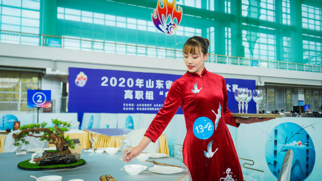 本网讯(党委宣传统战部 酒店管理学院)11月17日-20日,初冬再相聚,2020年山东省职业院校技能大赛在学院体育馆举行,共有来自全省各地26支队伍同台竞技、共展专业魅力。为期四天的赛事,选手们沉着应战,用精湛的技艺和风采,展示了省内高职院校餐厅服务的最高水平。