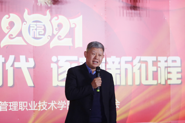 联欢会上,学院党委书记李达向全体师生致新年贺辞。他表示,在每一位教职员工的努力和付出下,我们平稳度过了极其不平凡的一年,2021年,在党中央的正确领导下,我们一定能够走向更加美好的未来。他对于大家在过去的一年中教学、科研等各方面取得累累硕果表示祝贺,希望大家齐心协力推进“双高计划”建设,为学院发展做出新的贡献。李达祝愿同志们新的一年里工作顺利、阖家幸福、牛年大吉。