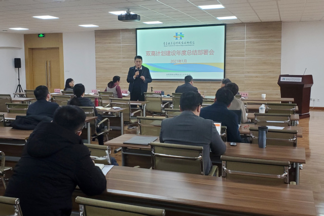 本网讯(教务处 白友强)1月22日,学院“双高计划”建设2020年度总结部署会在行政楼四楼会议室召开。
