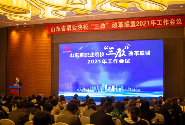 本网讯(职业教育研究发展中心)4月23日,由我院等院校联合发起成立的山东省职业院校“三教”改革联盟召开2021年工作会议,来自全省100多所高职、中职分管教学领导、教务负责人、专职教师等220余人参会。