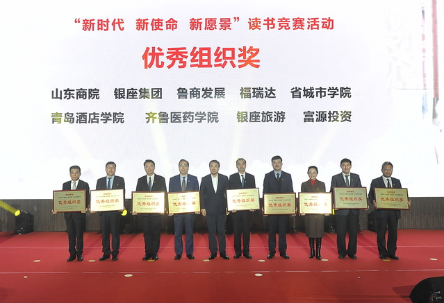 本网讯(党委宣传统战部 李代玉)春光和阅读不可辜负。4月23日,正值第26个世界读书日,鲁商集团在党史学习教育读书活动启动仪式上,对2020年读书竞赛活动进行颁奖,学院共有15篇作品获奖,其中一等奖3篇、二等奖2篇、三等奖3篇,学院荣获“优秀组织奖”。副院长商士海代表学院登台领奖,纪委书记姜玲玲、副院长宫恩龙、副院长于宏刚参加启动仪式。