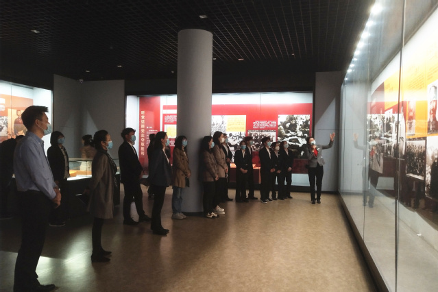 在青岛市博物馆“红色基因 薪火相承:沂蒙精神展”展区,讲解员带领艺术学院师生参观学习了“马克思主义照亮蒙山沂水”“为人民靠人民浴血奋战”“听党话跟党走夺取胜利”“沂蒙精神 永放光芒”四个单元,为师生们讲解了沂蒙精神从逐步形成到传承发扬的伟大历程,重点解读了青博馆藏的1944-1946年滨海区党委宣传部编印的《支部通讯》、《支部生产教材》、《支部怎样领导庄里的工作》等文献资料,以及1944年中国人民抗日军政大学第一分校毕业证书等珍贵的革命文物展品。珍贵的历史图片与代表性革命文物,为全体师生上了一堂生动的党史学习教育课。