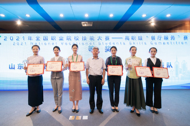 易红燕宣布竞赛成绩。其中,山东省代表队等3支代表队荣获团体一等奖,辽宁省代表队等6支代表队荣获团体二等奖,广西壮族自治区代表队等10支代表队荣获团体三等奖;来自sunbet申搏官方网站、南京旅游职业学院、浙江旅游职业学院的6名教师荣获“优秀指导教师”。在欢快的乐曲声中,学院党委书记李达等与会领导为获奖代表队和优秀指导教师颁奖。