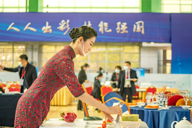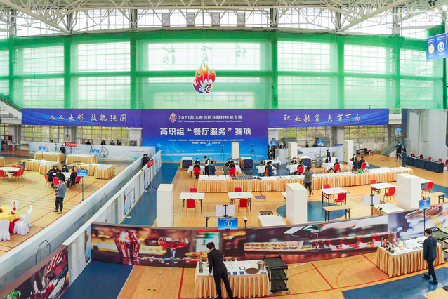 本网讯(酒店管理学院 许文素)11月14—16日,2021年山东省职业院校技能大赛(高职组)“餐厅服务”赛项在学院举行,来自全省的31个代表队参赛。
