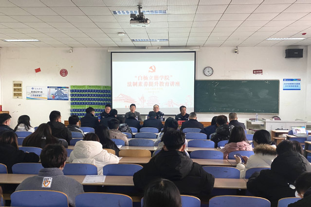 12月2日,信息工程技术学院开展“白杨立德学院”法制素养提升教育讲座,邀请青岛市李沧区反诈中心负责人孙迎、九水路派出所副所长王涛以及反诈中心民警仓怀世到场开展普法宣讲。孙迎用通俗易懂的方式向同学们讲述了电信网络诈骗的具体表现,提醒同学们远离电信网络诈骗,保护自身和家人安全,为全社会预防电信网络诈骗贡献自己的力量;同时,通过列举发生在大学生身边的鲜活案例,引导学生划清道德与法律的界限,切实增强法治观念。