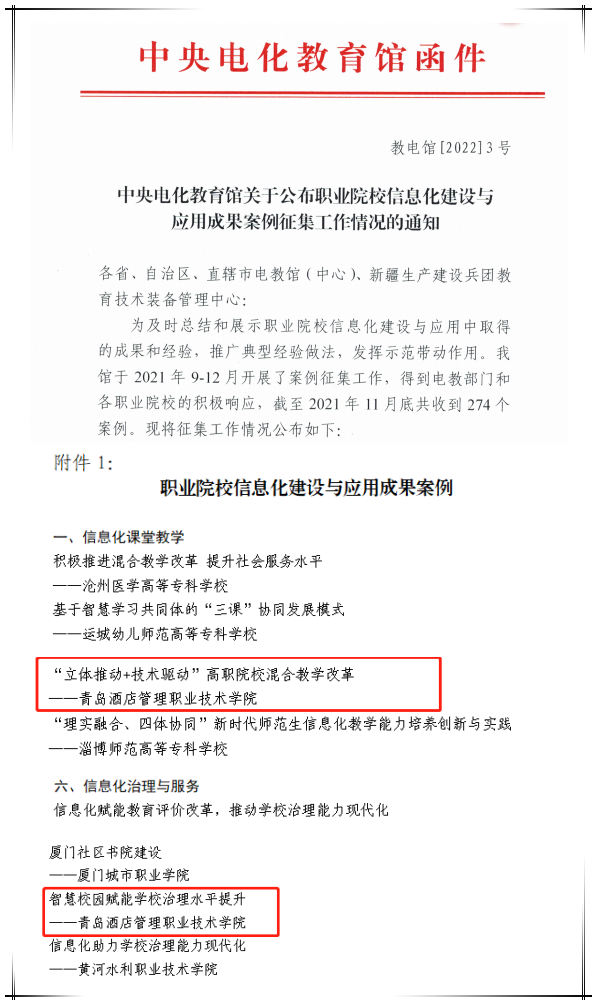 为做好案例申报工作,学院组织了教育信息中心、教务处及相关院部,结合数字校园、网络教学平台的海量数据,系统梳理了学院信息化与教学、管理、服务的典型做法,提炼了“信息化课堂教学”与“信息化治理与服务”两个类别的案例,并成功入选。
