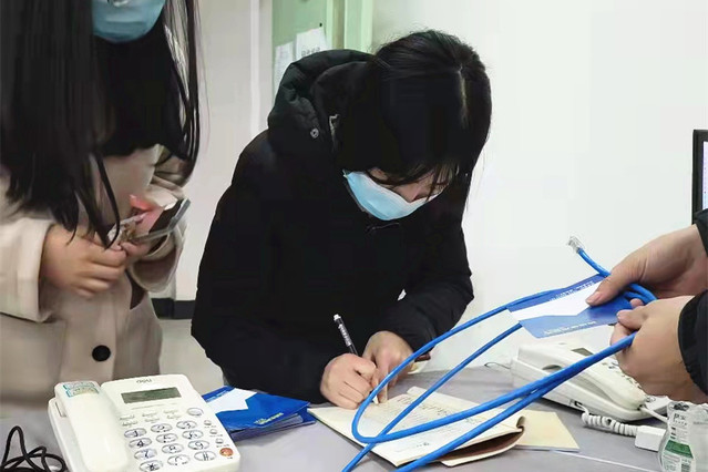 线上教学期间,对首次入网的学生免费提供网线,全校学生可免费使用校园网络;信息化保障团队提供7×24小时响应电话及现场服务,全方位加强对校园网的技术支持;对学生反映的网络问题,教育信息中心逐一进行电话反馈,并深入宿舍一线现场解决。