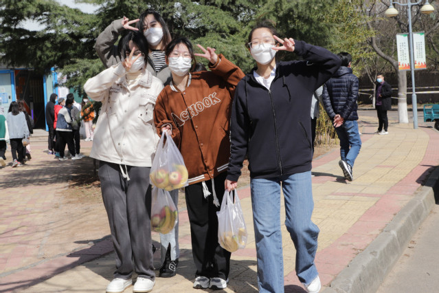 本网讯(党委宣传统战部 总务处)3月27日,西餐厅二楼青岛中快餐饮服务有限公司为在校师生免费派发了“水果大礼包”,1100多箱,5万斤。苹果、水晶梨、沃柑、香蕉4种水果,每种2个,共8个。丰富的品类让师生们切身感受到了来自学校大家庭的关爱和温暖。