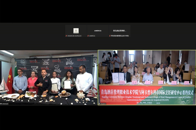 姜玉鹏代表学校与阿卡普尔科国际烹饪研究中心签署合作备忘录。