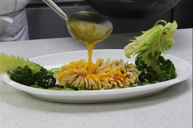 签约仪式后,学校与阿卡普尔科国际烹饪研究中心以鱼虾为食材,分别进行了中墨传统烹饪技艺展示。烹饪学院丁德龙老师制作的茄汁珊瑚鱼、百合滑虾球两道菜品,融合东西烹饪技法,展示出扎实的鲁菜烹饪技能,得到了与会嘉宾的一致好评。双方以文化交流为纽带,以美食为载体,展示了“美美与共”的友好情谊,共庆中墨建交50周年与友城合作新起点。