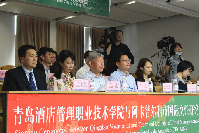 本网讯(国际交流与合作处 张晴)6月7日,学校与墨西哥阿卡普尔科国际烹饪研究中心举行签约仪式暨传统烹饪技艺交流展示活动,中国人民对外友好协会有关领导、墨西哥驻华大使施雅德、阿卡普尔科市市长阿贝丽娜·洛佩斯,青岛市人民政府外事办公室党组成员、副主任真珠,市教育局国际交流合作处处长晁永强,市外办美大处处长陈宣伊,学校党委书记李达、院长姜玉鹏、副书记韩西清参加活动。活动由真珠主持。