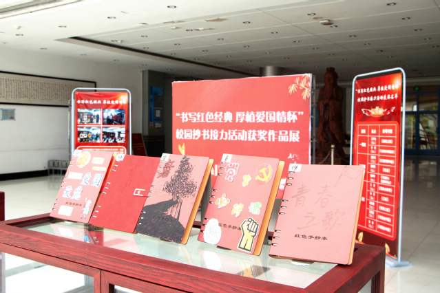 目前,全部手抄作品在图书馆一楼大厅进行集中展示,引来许多学生驻足观赏、相互交流。
