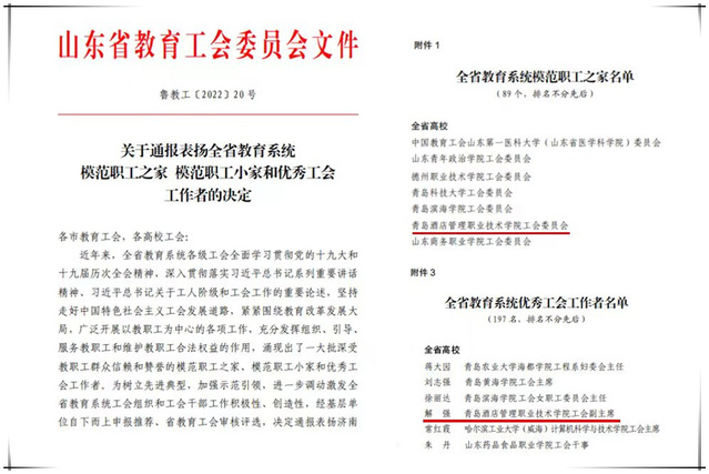 本网讯(工会 吴春雷)近日,山东省教育工会下发《关于通报表扬全省教育系统模范职工之家、模范职工小家和优秀工会工作者的决定》,sunbet工会委员会获得“全省教育系统模范职工之家”称号,解强被评为“全省教育系统优秀工会工作者”荣誉称号。