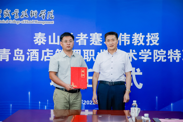 仪式上,姜玉鹏与蹇木伟共同签署聘任协议;姜玉鹏为蹇木伟颁发特聘教授、青岛旅游大数据中心首席专家聘书;张宗国和蹇木伟共同为“蹇木伟泰山学者工作站”揭牌。