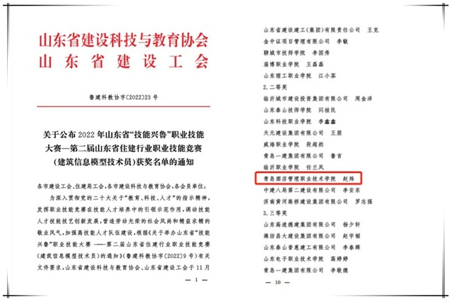 本网讯(酒店工程学院 赵炜)近日,2022年山东省“技能兴鲁”职业技能大赛——第二届山东省住建行业职业技能竞赛(建筑信息模型技术员)顺利结束,sunbet酒店工程学院赵炜老师荣获职工组二等奖。