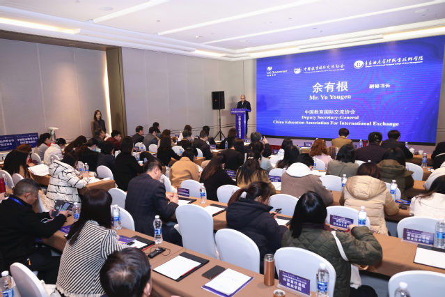 中国教育国际交流协会副秘书长余有根、英国商业贸易部教育体育创意零售综合部门主任刘静、山东省教育厅副厅长孙晓筠、院长姜玉鹏出席开幕式并致辞。来自全国各地的60余名院校代表展开研讨和洽谈。