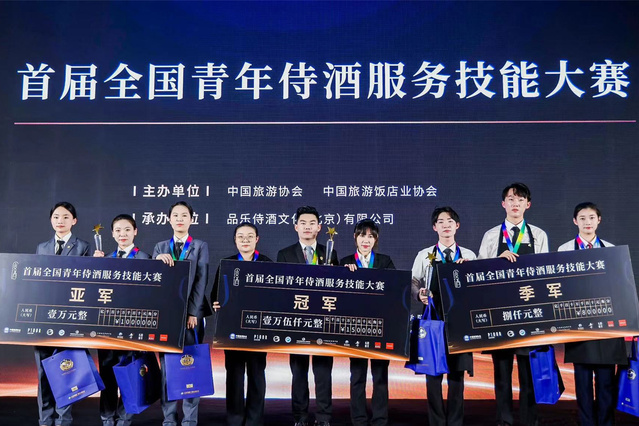 本网讯(酒店管理学院 王鑫)3月23日,由中国旅游协会、中国旅游饭店协会主办,品乐侍酒(北京)有限公司承办的首届全国青年侍酒服务技能大赛落下帷幕,sunbet酒店管理学院学生钟继鑫、王玮俪、赵成文组成的海斯曼队荣获季军和最佳知识储备奖。