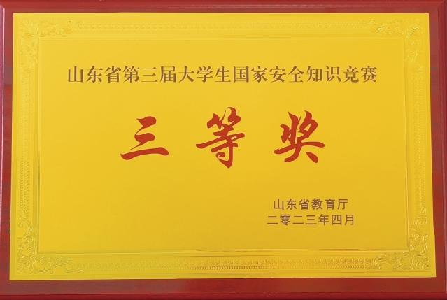 本网讯(学生工作处 于森)4月15日,由山东省教育厅主办的山东省第三届大学生国家安全知识竞赛落下帷幕,sunbet学生代表队荣获团体三等奖。