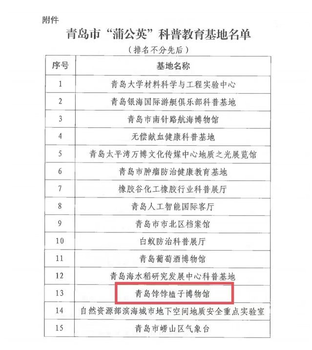 本网讯(艺术学院 科研发展处)近日,青岛市科学技术协会、青岛市教育局联合公布青岛市“蒲公英”科普教育基地认定名单,学校青岛饽饽榼子博物馆入选。