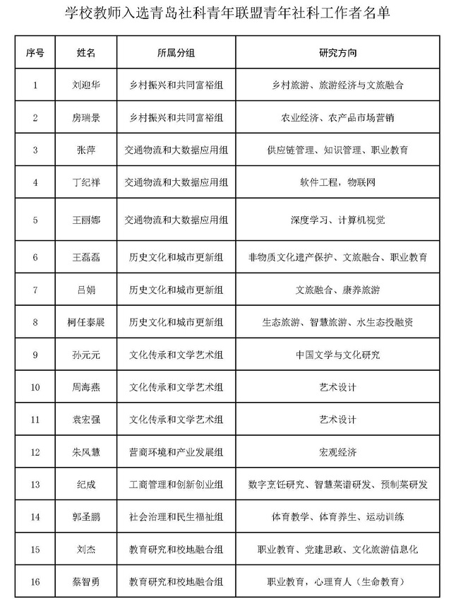 青岛社科青年联盟是我省成立的首个市级层面服务联系青年社科学者、青年社科工作者的平台,联盟成员由来自驻青高校、社科研究机构等的优秀青年学者、青年社科工作者共同组成。sunbet有16名教师入选,是对学校在青岛市哲学社会科学研究领域取得的成绩以及为校地融合发展所作贡献的充分肯定。