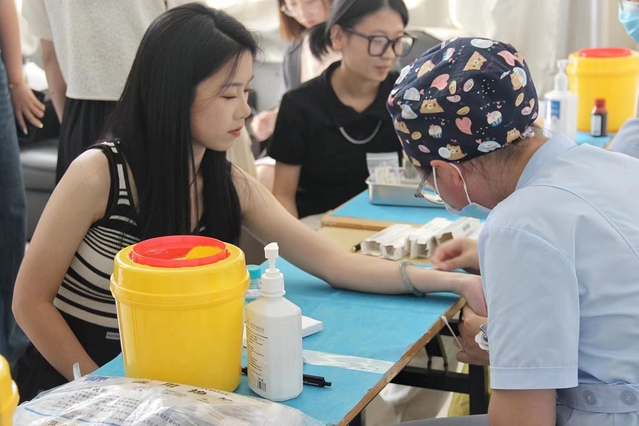 此外,为贯彻落实传染病防控“四早”原则,在区疾控指导下,总务处联合学工处对学校大二、大三学生以随机抽取200例样本,进行结核病早期预防性筛查。本次筛查首次采用灵敏度和特异性更高的新型结核诊断试剂重组结核杆菌融合蛋白 (EC) (宜卡)进行。