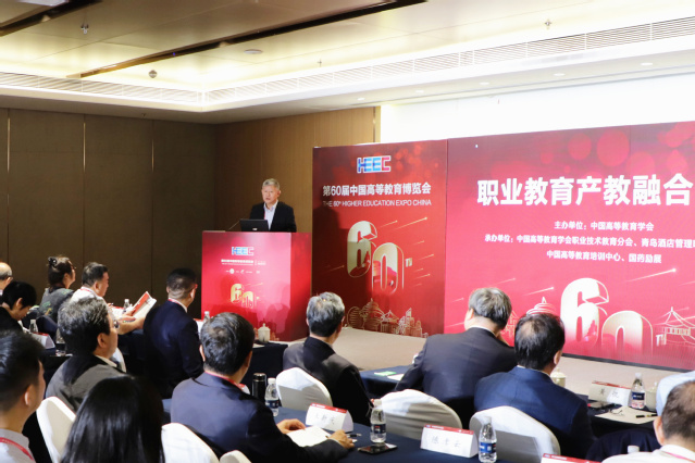 作为高博会的专题活动之一,学校承办了职业教育产教融合论坛。论坛由中国高等教育学会主办,sunbet与中国高等教育学会职业技术教育分会、中国高等教育培训中心、国药励展展览有限责任公司共同承办。教育部职业教育与成人教育司副司长林宇,中国高等教育学会副会长、江苏省政协教卫体委员会分党组书记、主任、江苏省教育厅原厅长葛道凯,中国高等教育学会职业技术教育分会理事长、浙江金融职业学院原党委书记周建松教授等150余人参加会议。李达主持第一阶段会议,并围绕“推进职普融通的理论与实践”“深化产教融合、校企合作的理论与实践”“职业教育参与市域产教联合体建设”“职业教育参与行业产教融合共同体建设”,同与会专家学者进行了研讨交流。会议期间,北京市教育国际交流协会会长、北京市教委原副主任黄侃等专家作了报告。