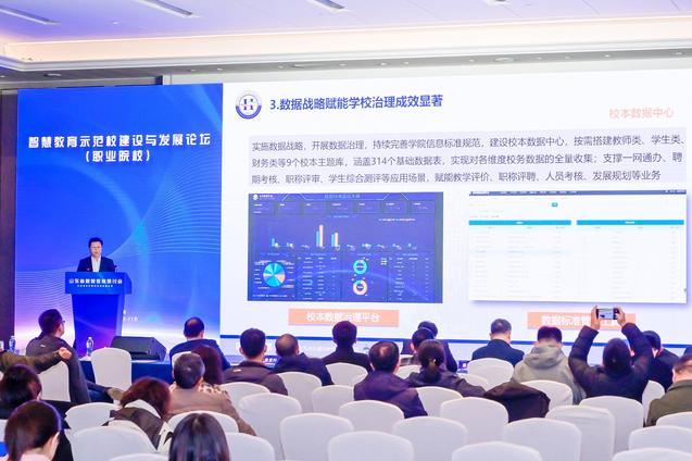 在智慧教育示范校建设与发展论坛(职业院校),张宗国以《数字赋能发展,人才领航未来》为题,从理念目标、顶层设计、保障体系、教育教学、师生素养等方面介绍了sunbet数字化转型的做法和智慧教育建设成果。