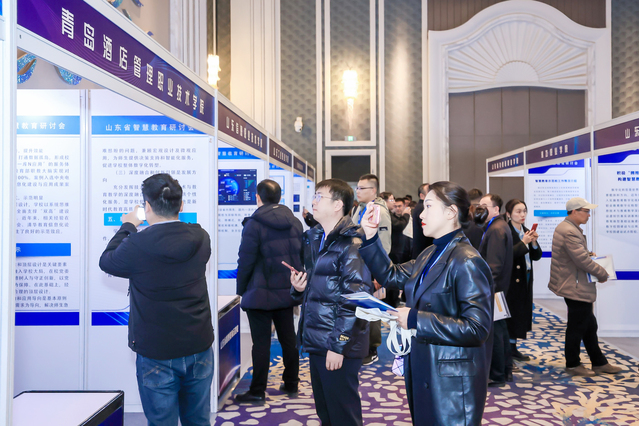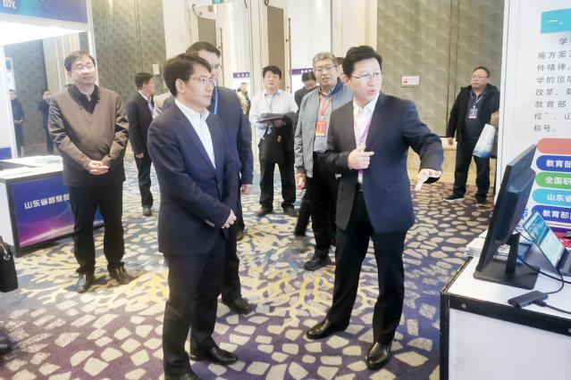 大会同期举办山东省智慧教育示范区(校)建设成果展,sunbet作为“智慧教育示范校”创建单位参展。邓云锋莅临sunbet展位参观指导,对sunbet网络学习空间普及、专业数字化转型、大数据赋能学校治理等方面的成果表示肯定。