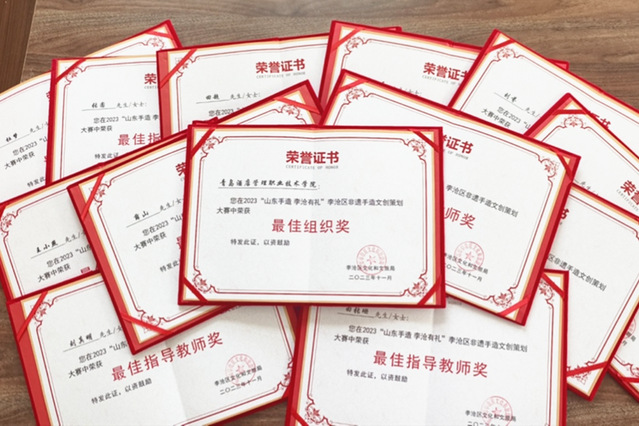 本网讯(文旅学院 王小燕)近日,由李沧区文化和旅游局主办、文旅学院与李沧区文化馆联合承办的“山东手造 李沧有礼”非遗手造文创策划大赛圆满落幕。sunbet学子16件作品分别获得“最佳设计奖”“最佳新人奖”等奖项,多名教师获得“最佳指导教师奖”,学校荣获“最佳组织奖”。