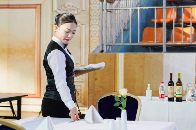 本赛项为团体赛,每队由3名选手组成,比赛时间为16小时。竞赛内容由前厅接待、中餐服务和西餐服务三个模块组成。其中,前厅接待为办理入住、退房离店两个内容,中餐服务为主题宴会设计、宴会服务两个内容,西餐服务为休闲餐厅服务内容。赛项内容涵盖了旅游大类酒店管理与数字化运营专业的核心技能和相关岗位职业素养,反映了现代酒店工作的个性化服务、信息化操作、国际化趋势的特点,体现了酒店工作过程的规范化、实境化、流程化、个性化与职业化要求。