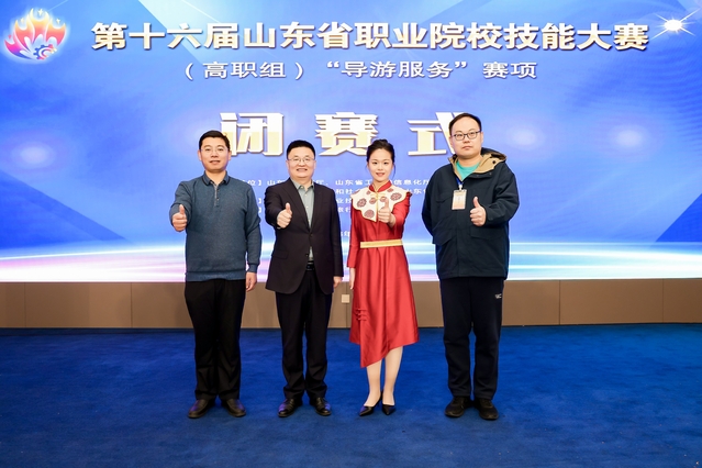 本次比赛由山东省教育厅、山东省工业和信息化厅、山东省人力资源和社会保障厅、山东省农业农村厅联合主办,共有来自全省各高职院校的42名选手参加比赛。本赛项为个人赛,包括现场导游词创作及讲解、自选景点导游讲解、导游知识测试、导游英语口语测试、才艺运用等五部分三环节。赛项规程按照国赛标准设定,旨在更贴近导游职业真实情境,全面考查选手的专业技能水平和综合素质。sunbet选手仪梦真表现突出,以扎实的导游知识、精彩的导游讲解、创意的才艺运用和流利的英语口语对话得到现场裁判专家的高度赞赏。