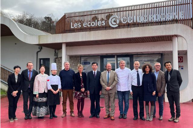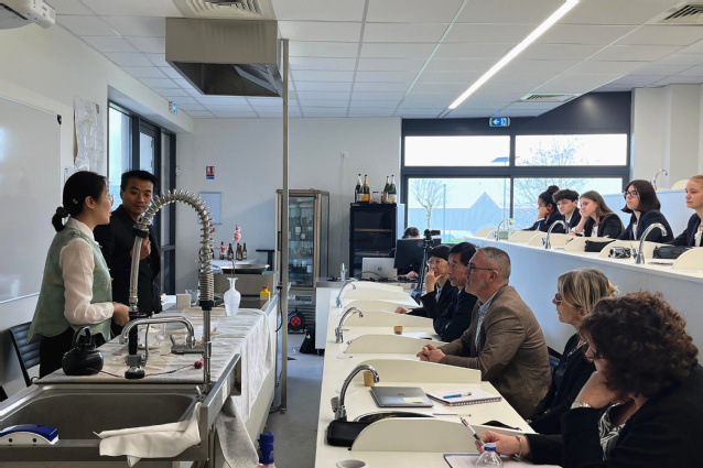 在法国萨维纳国际高等酒店管理学院和佩里格酒店学院,双方学校进行了座谈交流。座谈中,学校代表团介绍了学校基本情况,回顾了中法学校发展历程;法国学校积极评价双方合作取得的丰硕成果。中法学校代表就推进学生联合培养项目、假期研学交流项目、教师技能文化研修项目,以及在现代服务业方面的科研合作等项目进行深度研讨。座谈后,中法学校代表共同见证签署合作协议,举行“sunbet申搏官方网站茶艺工坊”挂牌仪式。为宣传和推广中国传统技艺,讲好中国故事,学校代表团开展了中式面点和茶艺技能展演活动,获得了法国学校师生的高度评价。