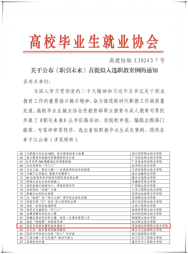 此次入选优秀案例,彰显了学校高质量人才培养水平和特色专业技能育人模式,树立了高职院校高质量就业典范,提高了学校的美誉度和影响力。